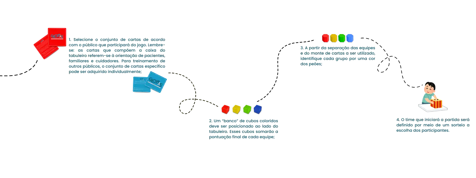 Com o mesmo tabuleiro é possível treinar equipes multiprofissionais em hospitais, clínicas, instituições de longa permanência, ou, introduzir a temática para estudantes de graduação das mais diversas áreas da saúde, assim como, orientar pacientes, familiares e cuidadores, sendo preciso apenas escolher as cartas próprias para cada público-alvo.