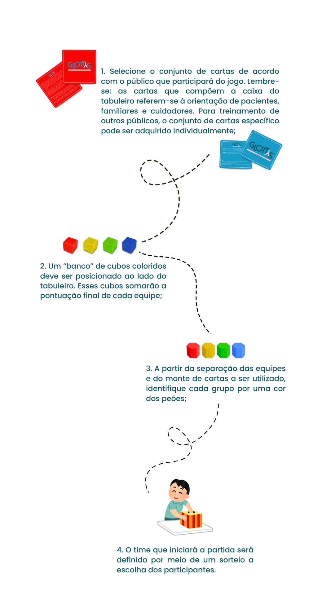 Glottys® é um jogo de tabuleiro que une o compartilhamento do conhecimento sobre as fases da deglutição, fatores de risco e efeitos de eventos aspirativos e, as medidas preventivas recomendadas a esse risco, com a diversão de uma competição em equipe, de forma prática, assertiva e ágil.